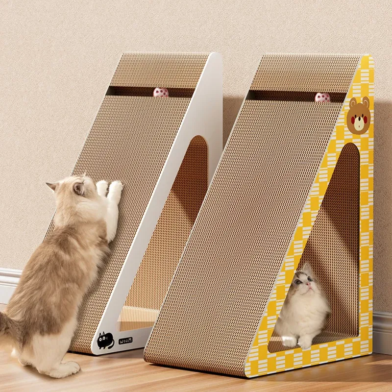 三角形スタンド型キャットスクラッチャー - 磨爪、遊び、そして快適な休息を提供!耐久性に優れた素材で、子猫から成猫まで楽しめるインタラクティブなクライミングスロープ付き!
