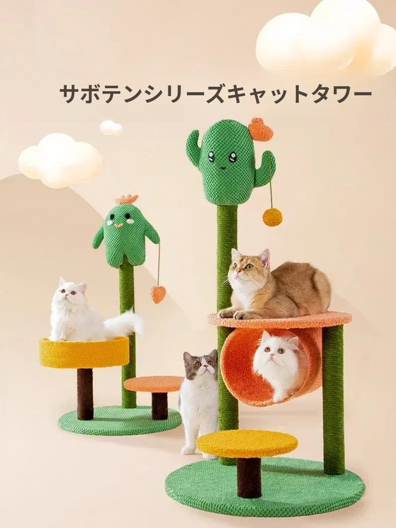 【特価セール】かわいいサボテン型キャットタワー!小型猫ちゃんのための遊び場&省スペースの猫ハウス、狭いお部屋にもぴったり!